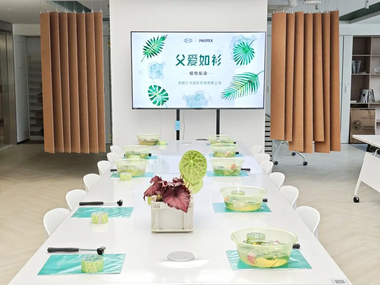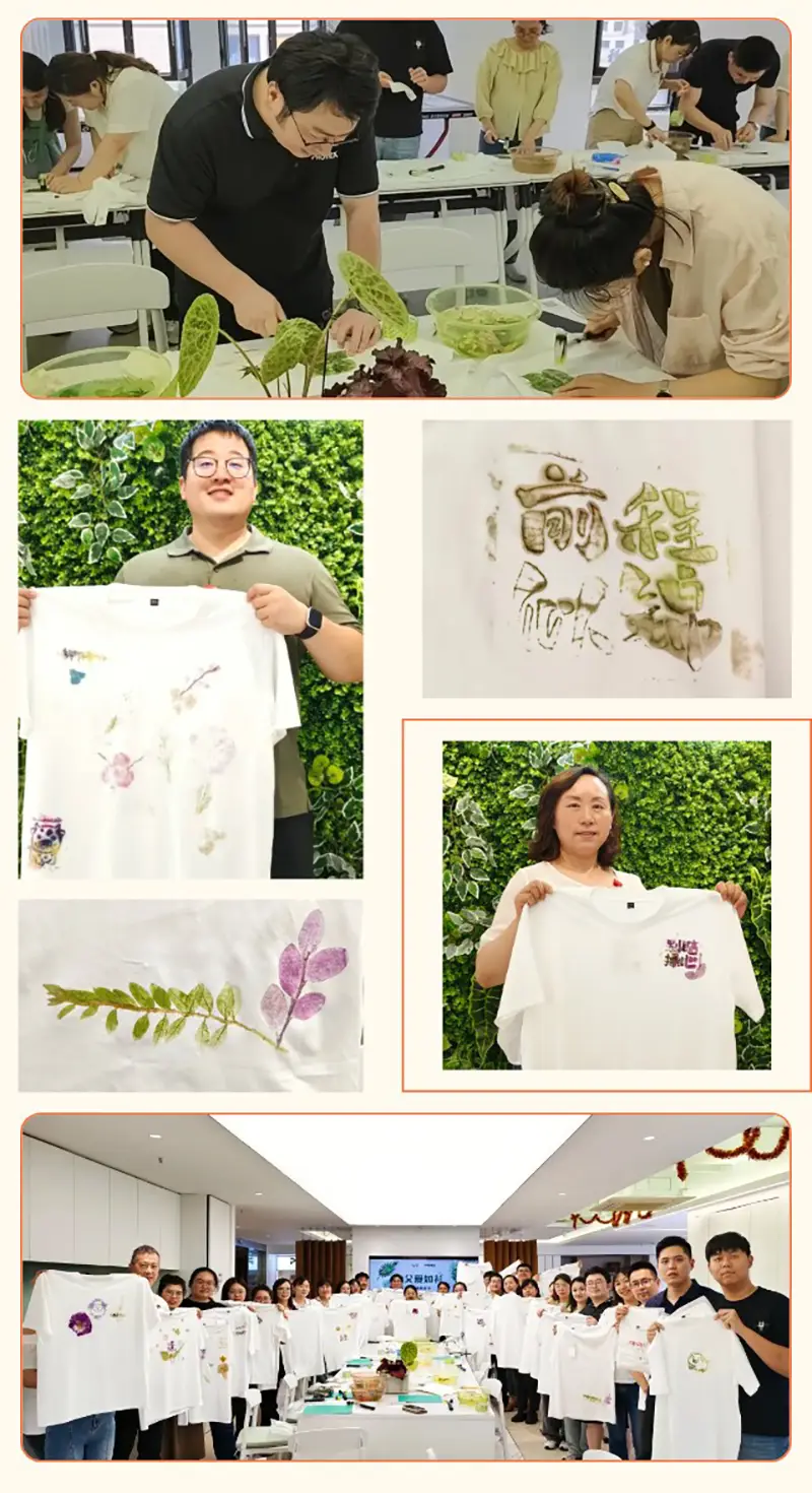 The “dong dong” knocking sound came one after another, like a drumbeat conveying thoughts. With the light knocking, the juice of the plant slowly seeped out, and the vein texture was clearly presented on the cotton cloth bit by bit. The verdant green and the delicate petals gradually outlined a unique pattern. When the plain white T-shirts became vivid, everyone’s eyes were full of joy and expectation. Every stitch and every knock was filled with unspeakable love for their fathers.
